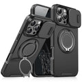 Protect your iPhone without compromising on style or functionality. This heavy-duty shockproof case features a slide camera cover to guard your lens from scratches and dust, a built-in screen protector for full-front defense, and a MagSafe-compatible bumper for effortless magnetic charging. With its adjustable kickstand, you can enjoy hands-free viewing on the go—perfect for work, travel, or everyday use. Sleek, rugged, and built to handle life’s drops, it’s the all-in-one case your phone deserves.